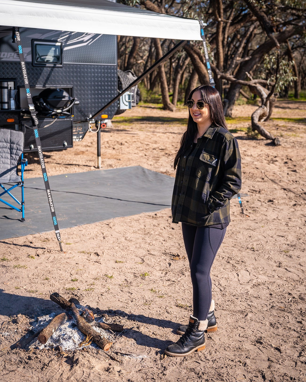 The Lotus Caravans flannelette shirt is far from an ordinary shirt. With a contemporary olive and black check, subtle Lotus Caravans logos, two chest pockets with button closures and side pockets, this flannelette delivers all that you can ask. Look and feel the part with the Lotus Caravans flannelette shirt. Available in men's and women's sizes.